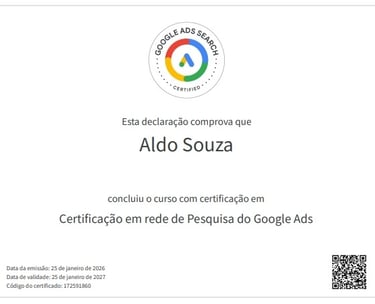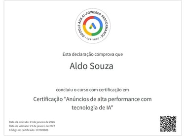03 (três) certificações ativas em Google Ads e selo de desenvolvedor Google.